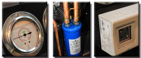 制冷系統(tǒng):全封閉風冷單級壓縮制冷方式/原裝法國“泰康”/全封閉風冷復迭壓縮制冷方式