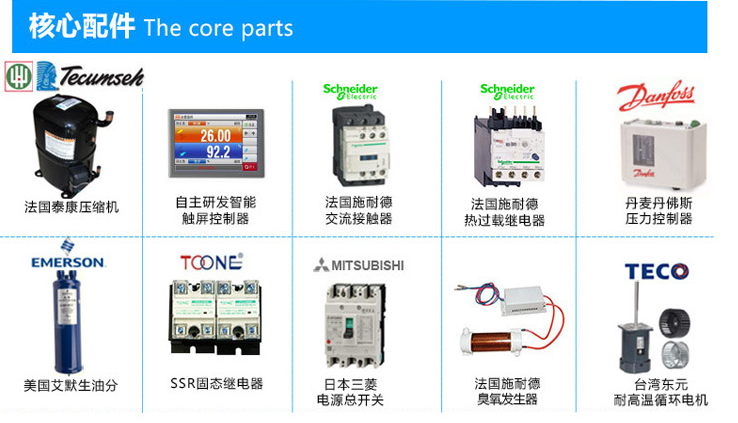 3、制冷及電控關(guān)鍵配件均采用國際知名品牌產(chǎn)品,使設(shè)備的整體質(zhì)量得到了提升和保證;